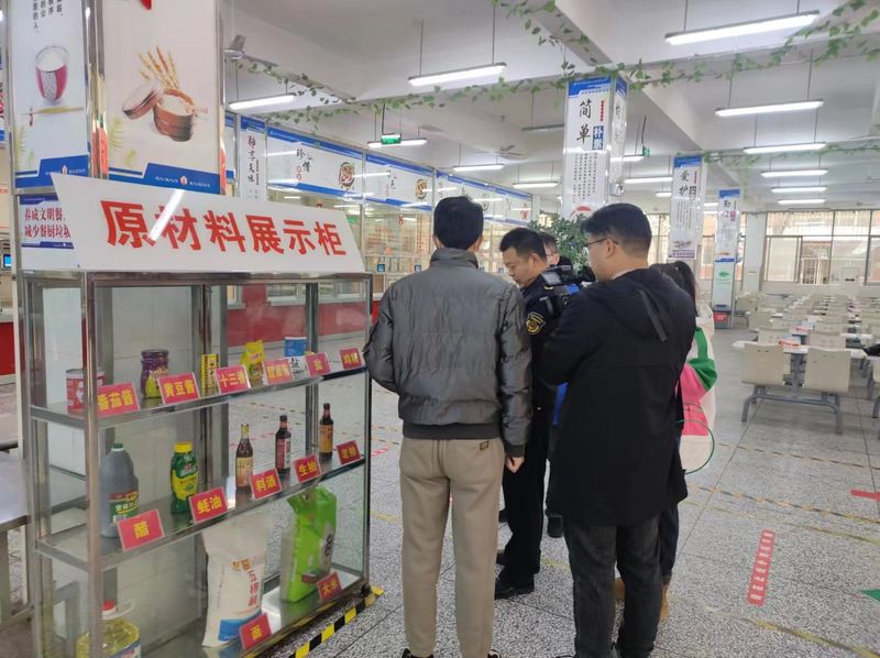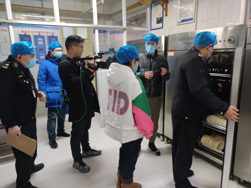 news center2023年12月29日上午 市市場監(jiān)督管理局陽光執(zhí)法欄目對我公司經(jīng)營的河師大附屬中學(xué)學(xué)生餐廳進行檢查 并對日常管理工作進行肯定